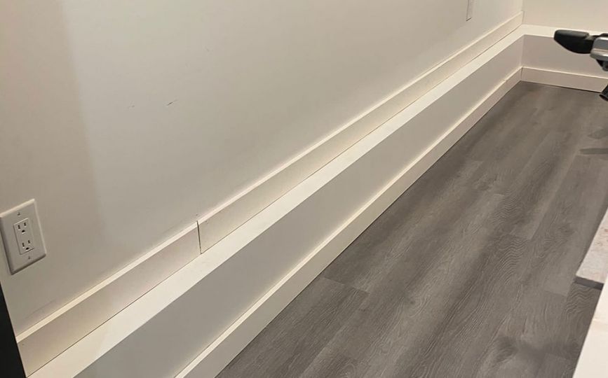 Afterward, we added custom trim to finish off the look. This included baseboards and door casings with crisp, clean lines. Because of the careful installation, the trim added a touch of style and brought the whole room together.