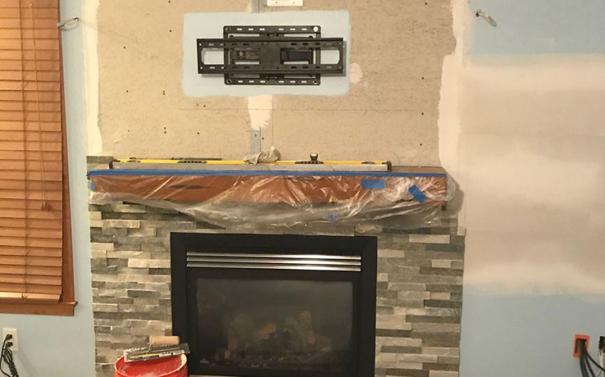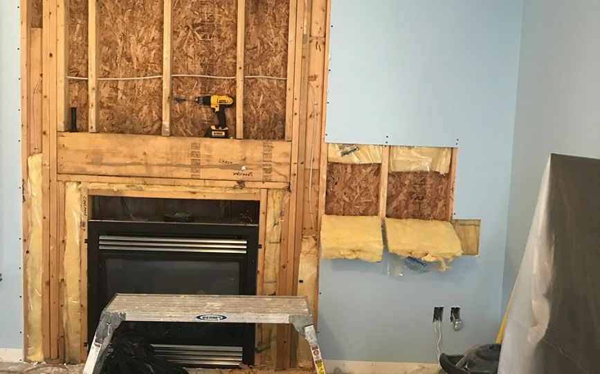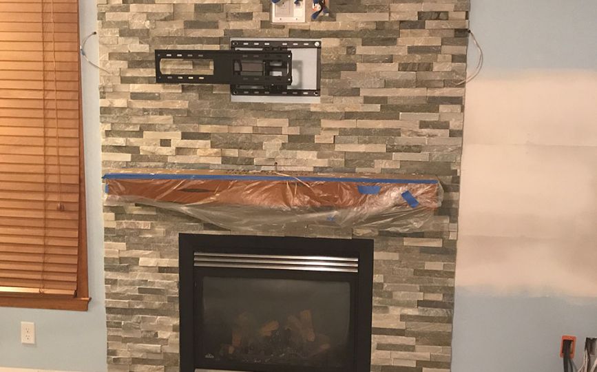 We framed the chimney with clean trim lines to complete the transformation and ensured all edges were polished. The rustic panels brought the space a cozy, lived-in feel while maintaining a clean and updated appearance. The client loved how the faux brick added charm and character without overwhelming the room or requiring heavy construction.