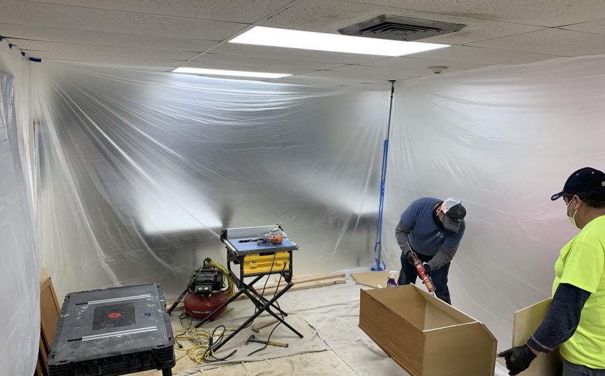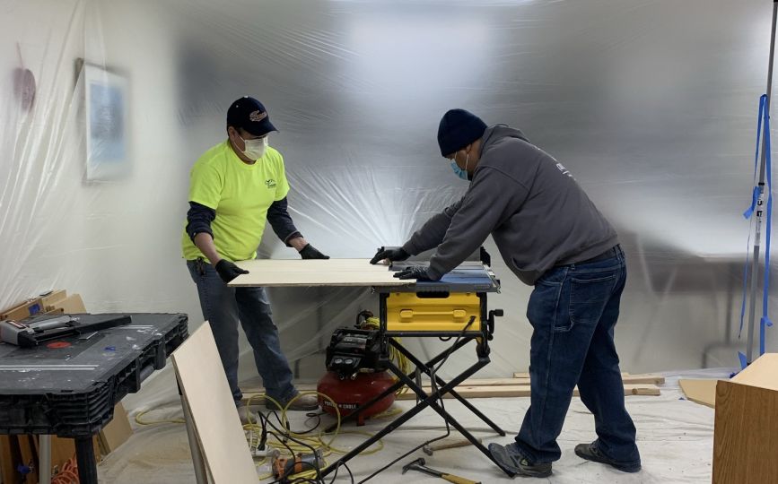 After that, our carpenters built a row of custom cabinets. These cabinets matched the original set to keep the kitchen looking consistent. Because every detail matters, we used the same cabinet faces and hardware. This gave the entire room a neat and professional look. Plus, the added cabinets gave the staff more room to store supplies and stay organized.