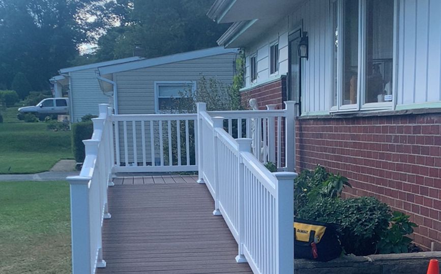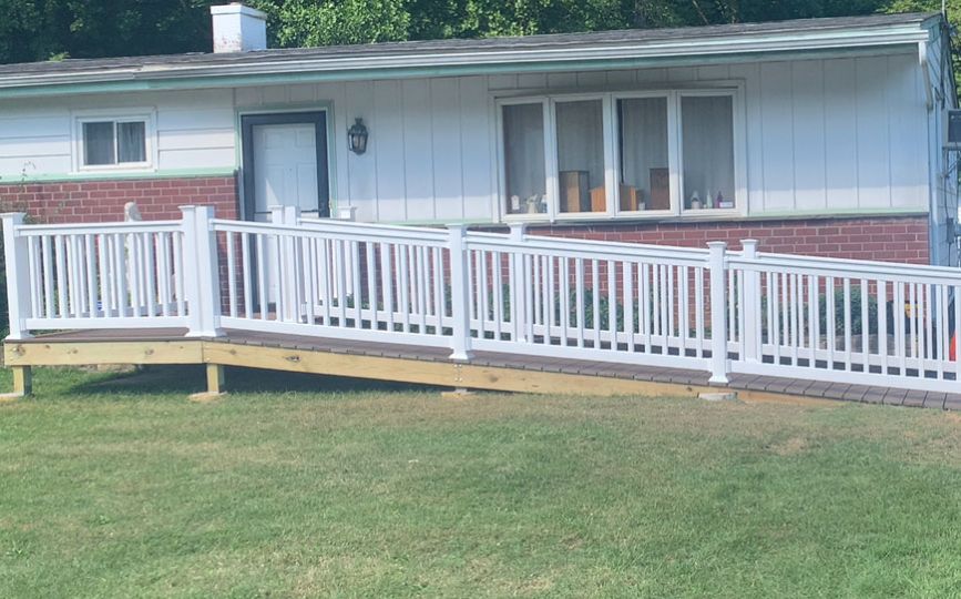 Next, we installed pressure-treated lumber that resists moisture and weather. We added supports underneath the ramp for extra strength. After that, we built a flat landing at the top of the ramp, right in front of the door. This made it easier for the homeowner to safely enter and exit the house. The ramp blended well with the home’s exterior, making it both useful and nice to look at.