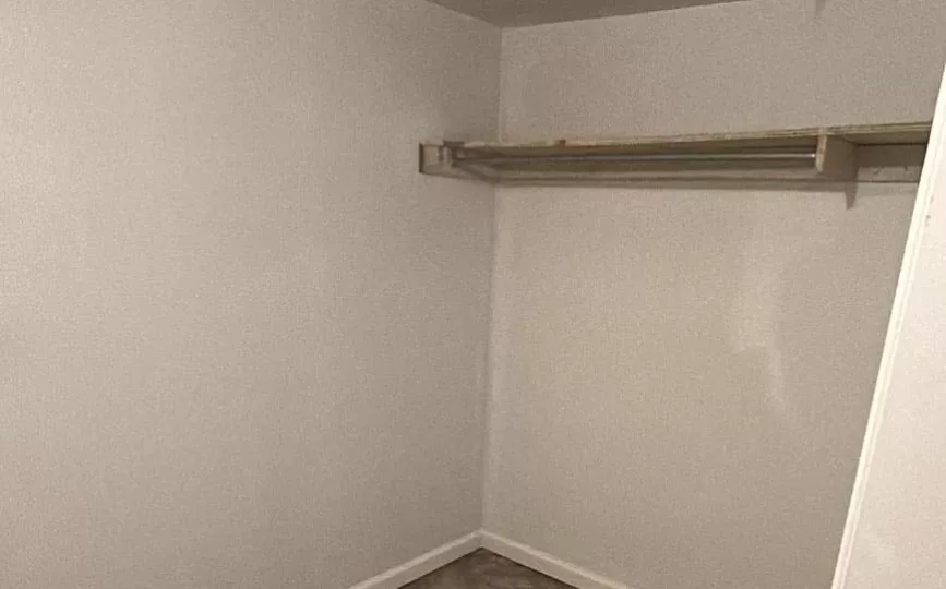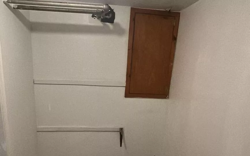 Additionally, we installed new baseboards and custom carpentry to give the space a polished look. These details helped pull the whole room together. In the bathroom area, the floor had also been damaged. Therefore, we repaired it using fresh concrete to level the surface. After that, we installed durable vinyl sheet flooring that looks clean and modern.