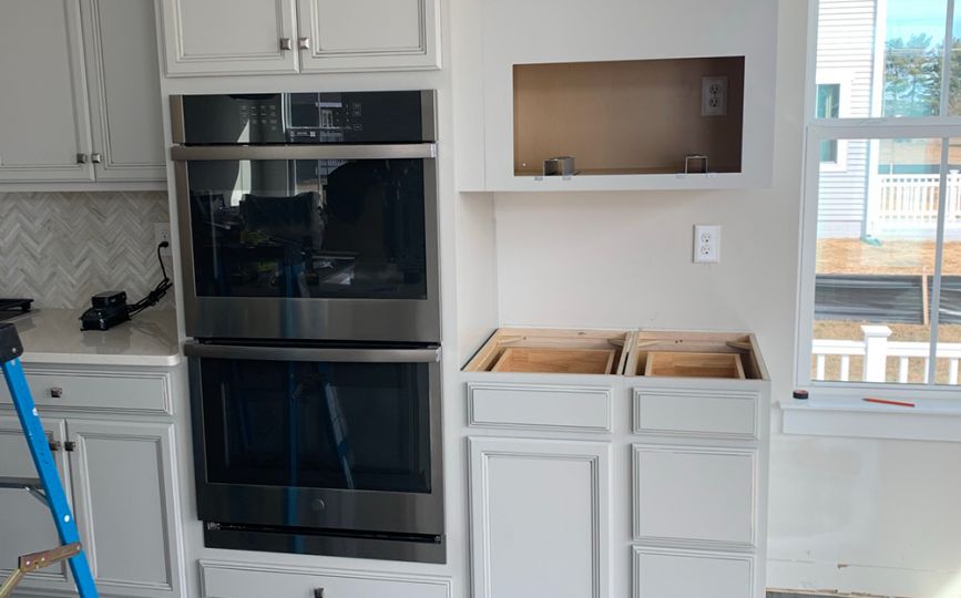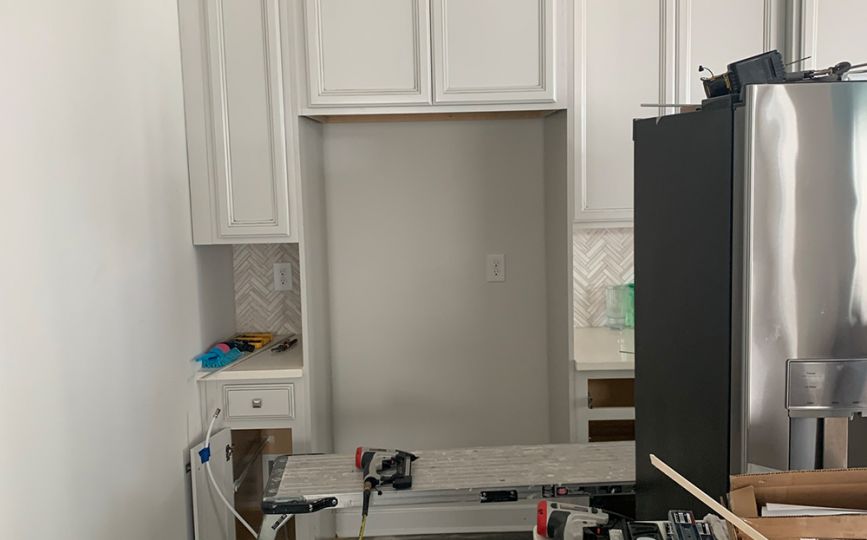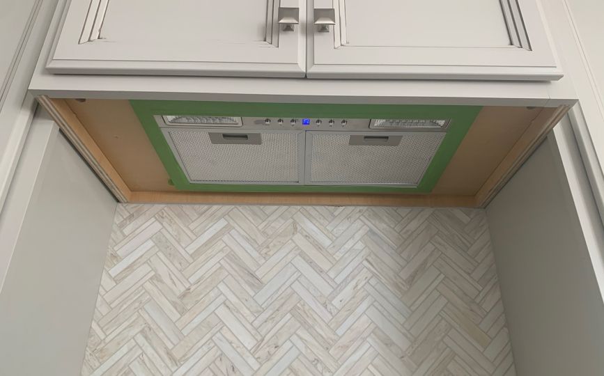 Next, we installed a sleek in-cabinet microwave that also had a built-in exhaust system. This upgrade helped save valuable counter space and improved airflow. Since the microwave fit right into the cabinet design, it looked clean and modern, not bulky or out of place.